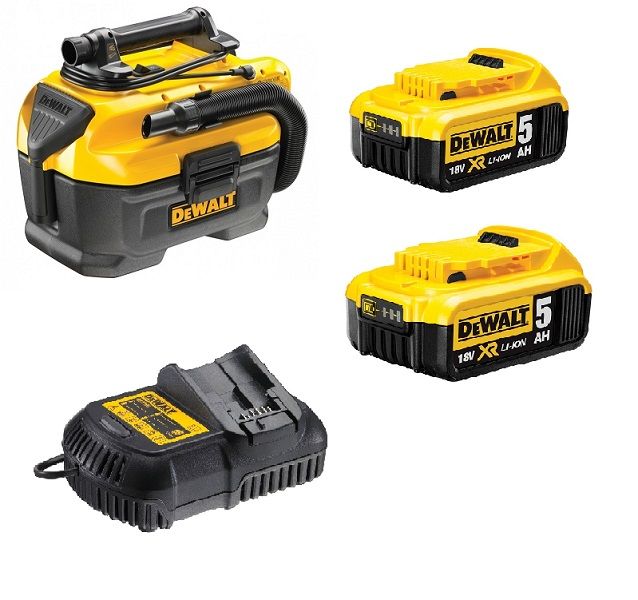 DeWALT bouwstofzuiger nat droog met 18V 5,0Ah accu's